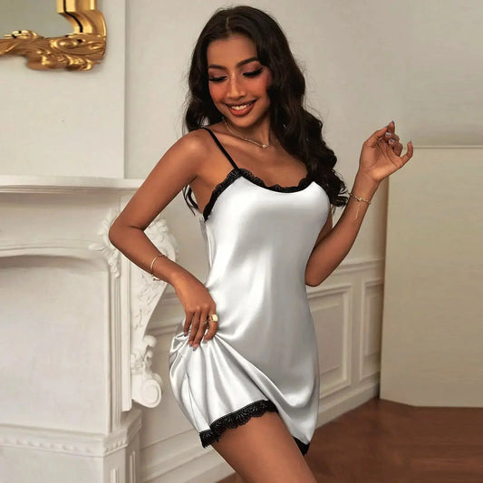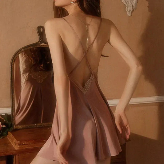 LacyMate™ Satin Lace-Up Backless Nightdress