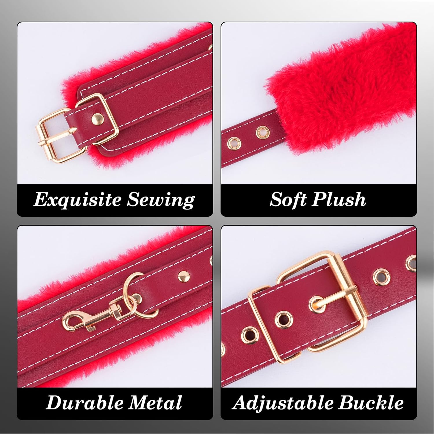 Soft Yet Sinful Materials – Luxuriously padded PU leather with fur lining. Built for rough play, gentle on skin.